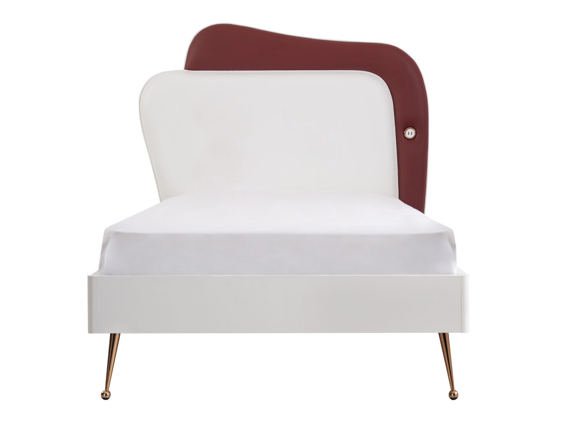 The Life Magic Bedstead brings playful style and smart functionality to your child’s room—perfect for apartment dwellers and busy families. Its unique, two-tone headboard in crisp white and deep burgundy adds a modern, cheerful touch, while the slim, gold-tipped legs keep the look light and airy.