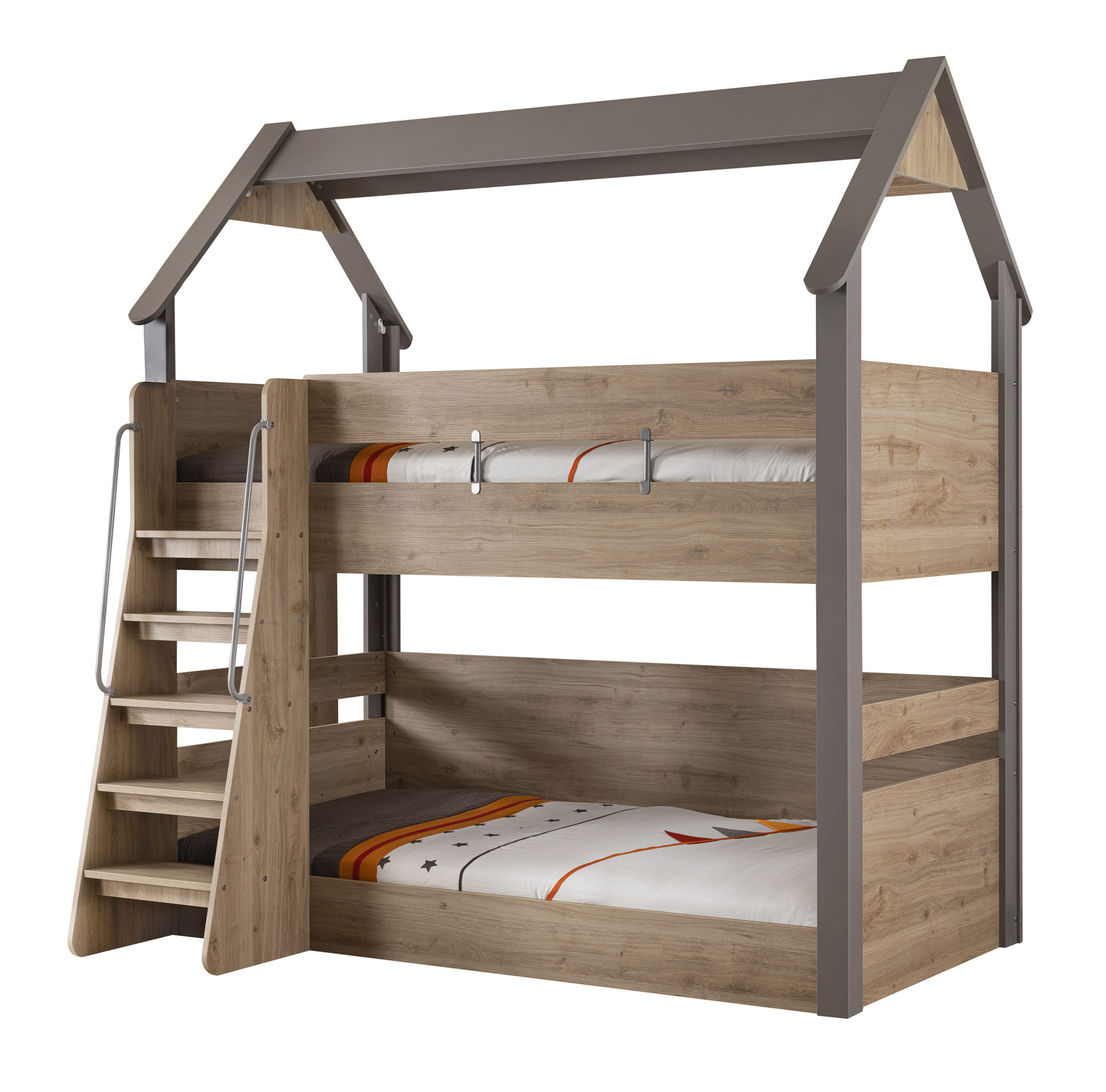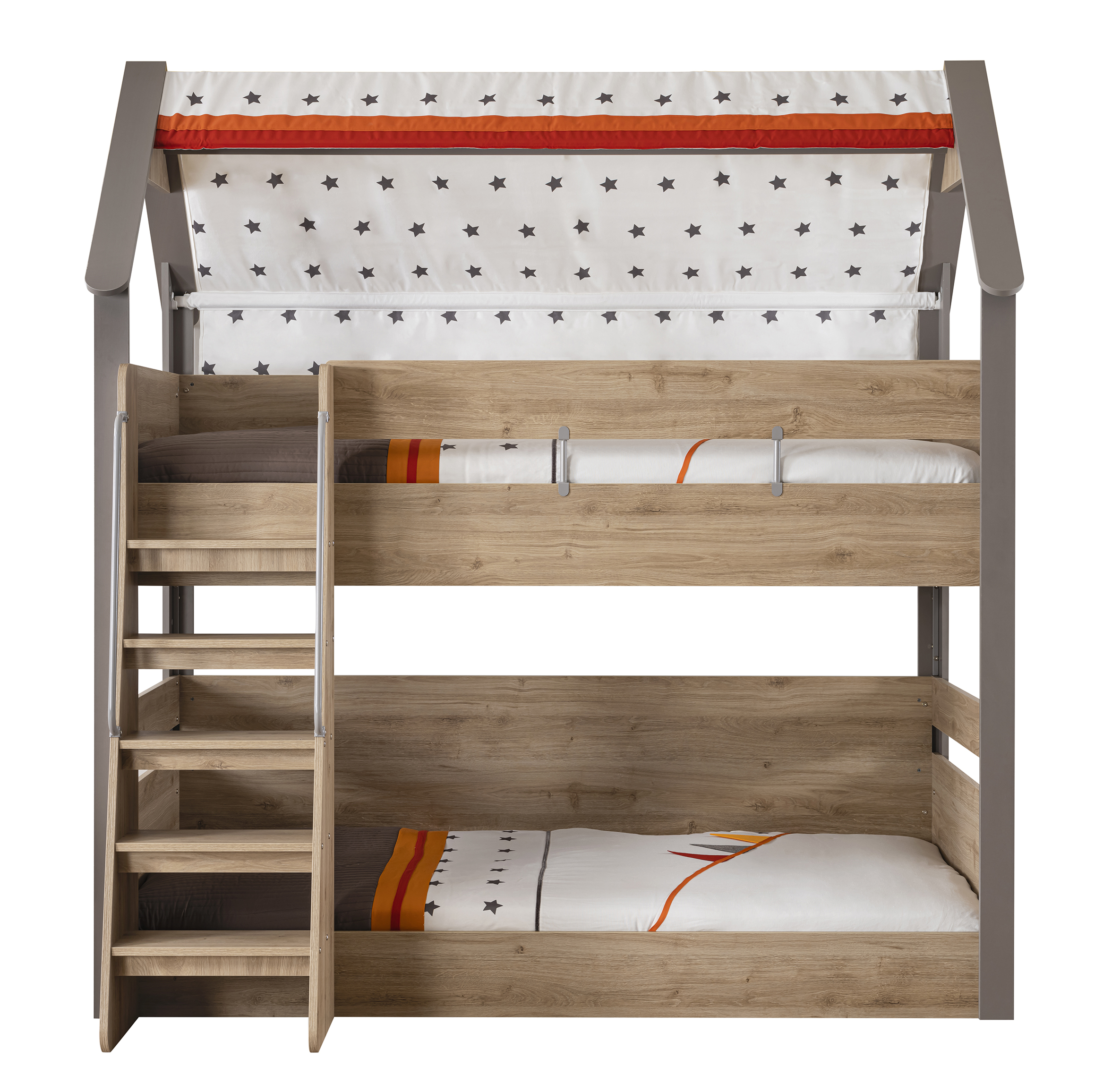 The gentle stairs with handrails make climbing easy for little ones, while the star-patterned canopy sparks imagination and makes every night feel special. Its compact footprint saves valuable floor space, making it perfect for shared rooms or smaller homes.