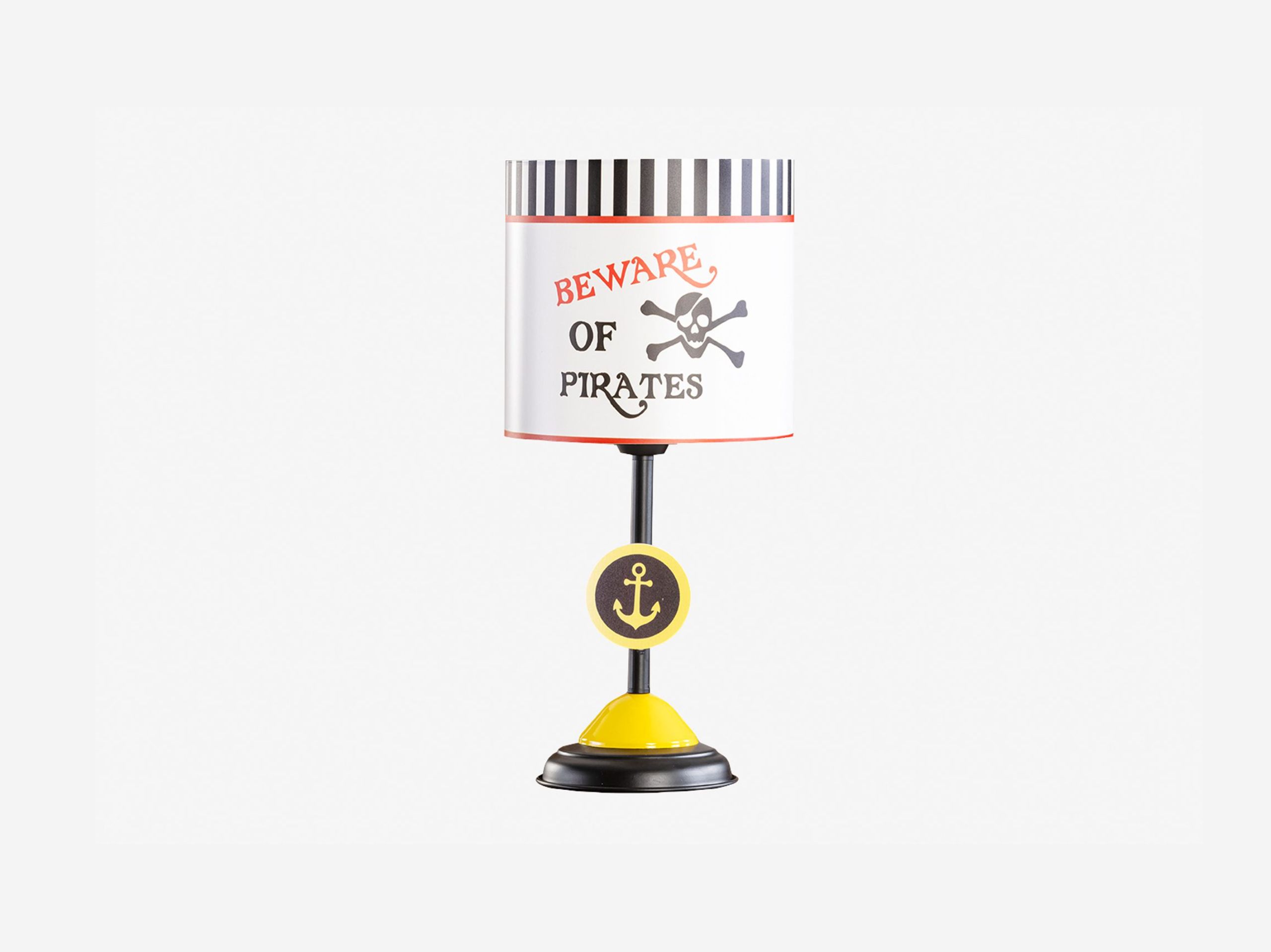 Add a splash of adventure to your child’s room with the Pirate Lampshade! Featuring bold “Beware of Pirates” lettering, a playful skull and crossbones, and classic black-and-white stripes, this fun lampshade instantly transforms any corner into a pirate hideout.