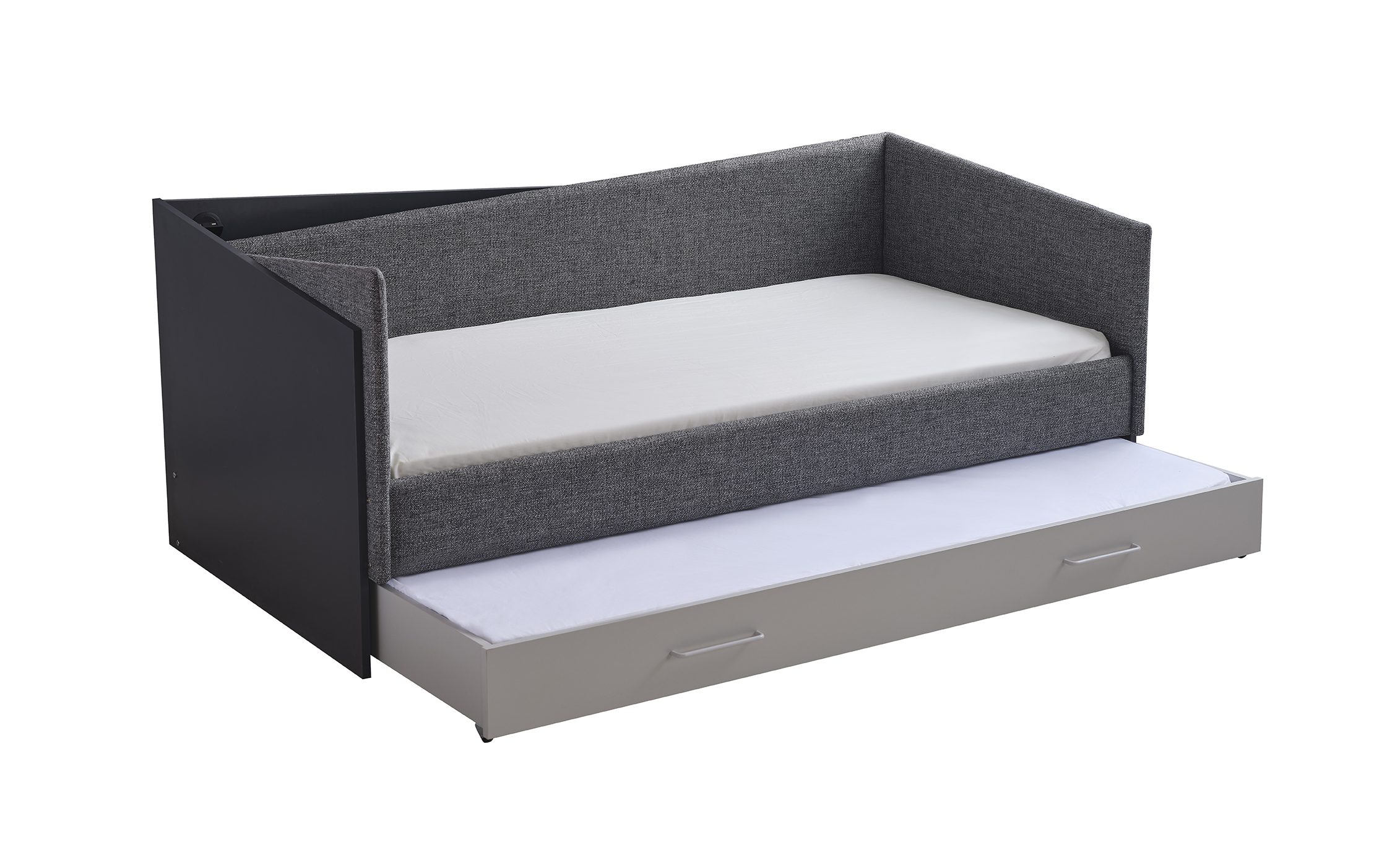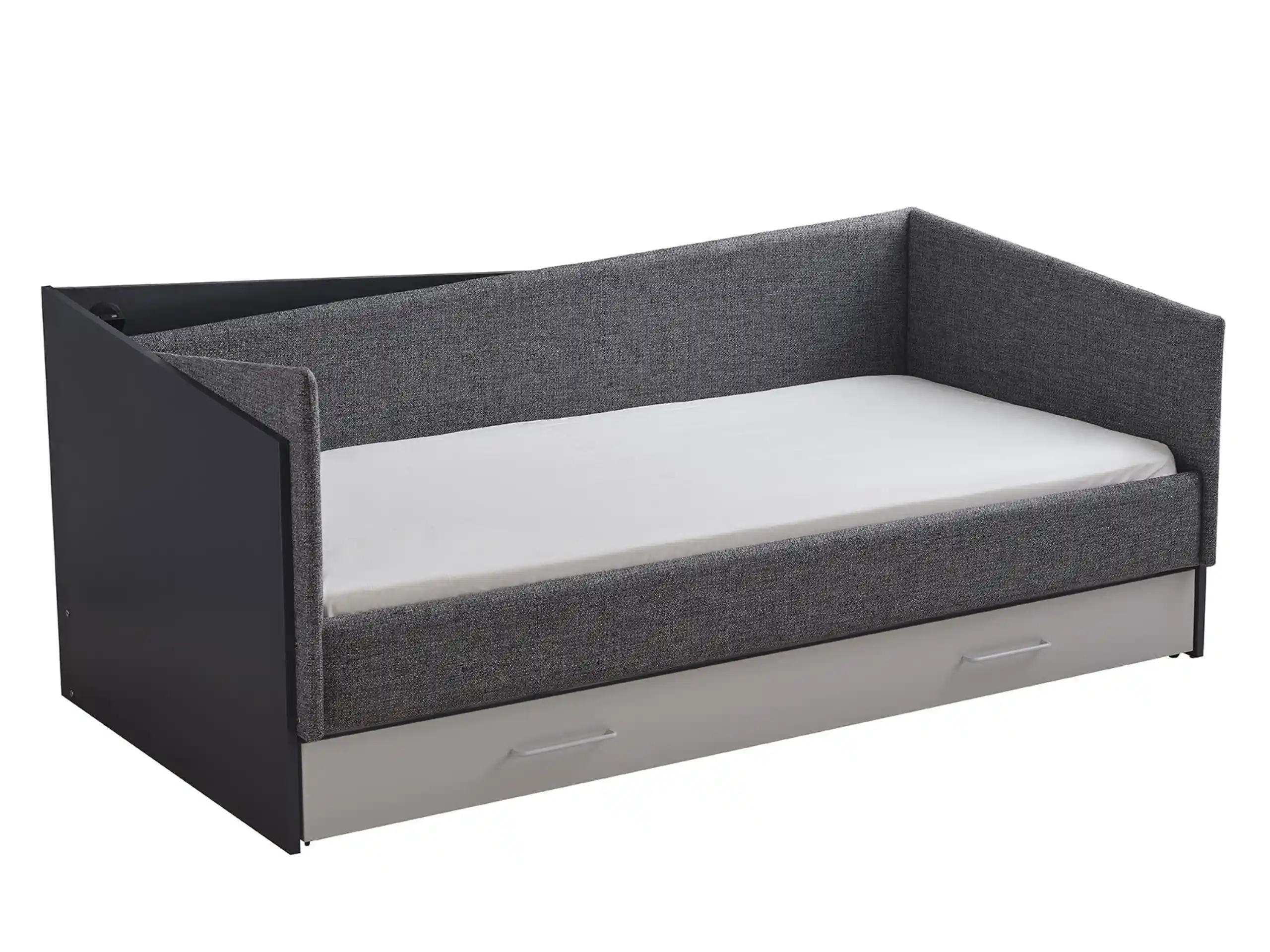 The Harvey Sofa Bed is the ultimate space-saver for kids’ rooms, blending comfort, style, and smart storage in one sleek package. As seen in the image, its modern grey upholstery and high-back design create a cozy spot for reading, relaxing, or sleepovers.